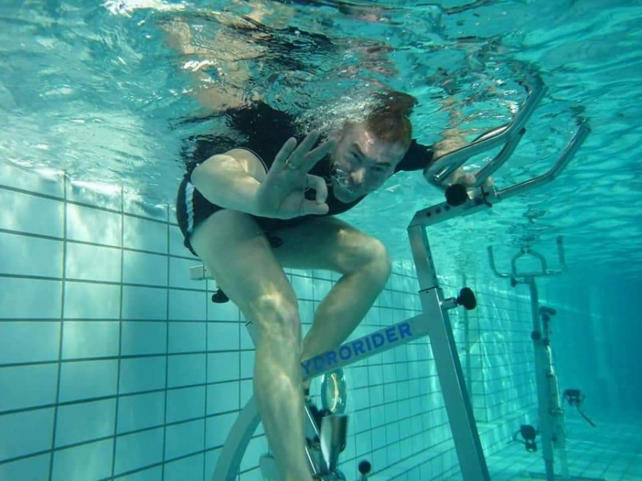Le fait de pédaler dans l’eau, d’une quasi absence de gravité et d’une certaine flottabilité, permet à des personnes souffrant d’arthrite, de douleurs musculaires et osseuses de pourvoir renouer avec le sport tout en douceur.